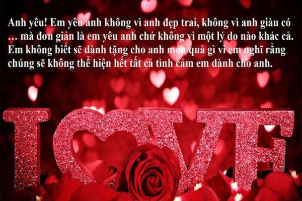 4. Cảm ơn anh vì tình yêu chân thành nhất của anh đã dành tặng cho em. Hôm nay là một ngày thật sự đặc biệt và ý nghĩa với anh, em chúc anh sinh nhật vui vẻ, hạnh phúc và có được sự thành công hơn nữa trong cuộc sống. Hãy nhớ là bên cạnh anh luôn có một người dõi theo và ủng hộ anh hết mình. I love you so much!!!