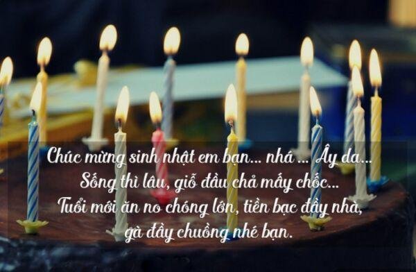 - Cuối cùng cũng đã đến ngày thôi nôi lần thứ 18 của mày. Chúc mừng người bạn thân của tao có một ngày sinh nhật với nhiều ý nghĩa. Chúc mày sẽ sớm thoát được cảnh ế đi sớm về khuya một mình. Đã rất nhiều năm đã không có ai quan tâm chúc mừng mày sẽ đạt được nhiều thành công và dự định ở trong cuộc sống này.