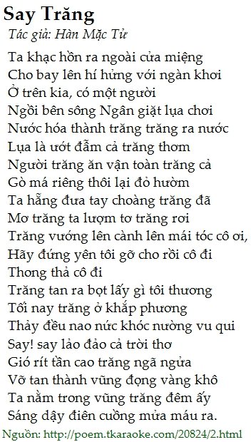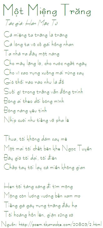 1. Thơ về trăng của Hàn Mặc Tử.