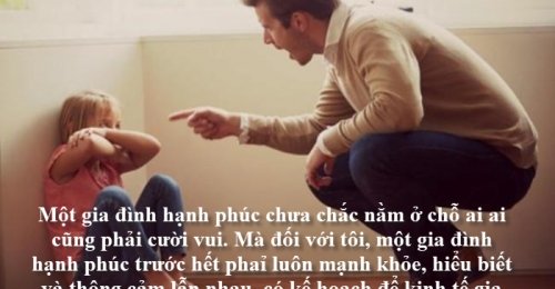 – Một gia đình hạnh phúc chưa chắc nằm ở chỗ ai ai cũng phải cười vui. Mà đối với tôi, một gia đình hạnh phúc trước hết phaỉ luôn mạnh khỏe, hiểu biết và thông cảm lẫn nhau, có kế hoạch để kinh tế gia đình đủ sống…