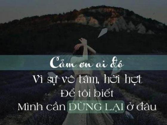 + Khi cuộc sống quá bon chen khiến bạn ngộp thở, hãy thôi đối đầu với nó. Đi một chỗ thật xa, thật yên tĩnh hít thật sâu, thở thật mạnh để mọi thứ trở lại cân bằng 9. Một mối quan hệ không rõ ràng bao giờ cũng khiến bạn trở lên mệt mỏi. Có khi yêu thật đấy nhưng chẳng biết mình là gì của nhau