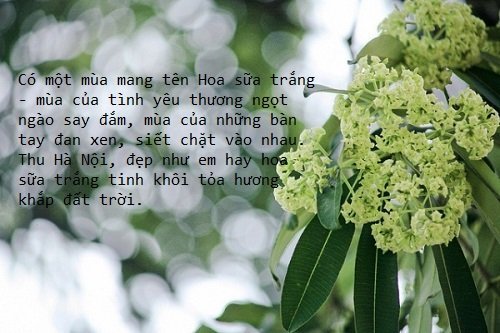 12. Đêm nay, đêm Hà Nội trở gió bất chợt tỉnh giấc vì hương hoa sữa len vào tận cửa phòng, vô tình bị một con gió đêm phả chút hương hoa rất mỏng lướt qua da mặt, mới biết Hà Nội của mình đã sang mùa.