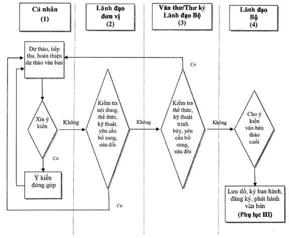 Lưu đồ soạn thảo, kiểm tra thể thức, kỹ thuật trình bày văn bản quy định chi tiết tại Phụ lục II Quy chế này.