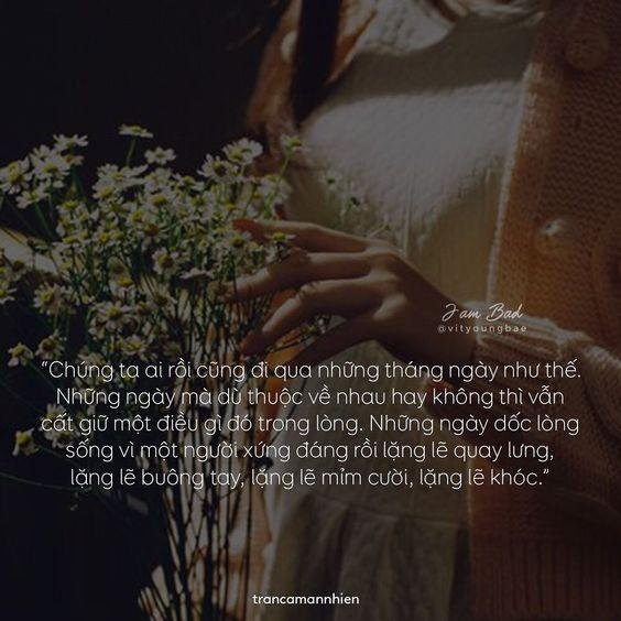 – Khóc một mình trong đêm mệt lắm người ơi. Hãy nhắm mắt lặng lẽ chìm vào giấc ngủ. Ngày mai ánh nắng rạng rỡ lại khiến ta mỉm cười.