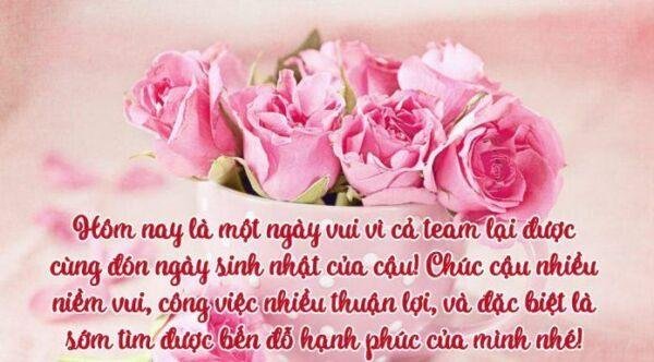 5. Chúc mừng sinh nhật đến với người đồng nghiệp thân yêu nhất của tôi. Mong rằng những điều tốt đẹp nhất trên cuộc đời này sẽ đến với đồng nghiệp của tôi. Chúc bạn sẽ nhanh chóng tìm kiếm được một nửa ấm áp cùng mình nắm tay đi hết chặng đường còn lại.