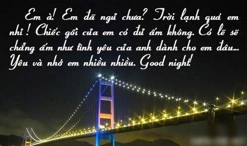 -Chúc em iu của anh có một giấc ngủ ngon thật là ngon nhé và mơ về anh nữa nha! Yêu e nhiều nhiều!
