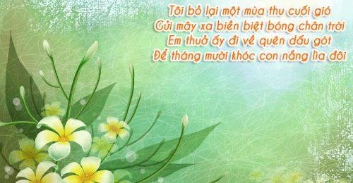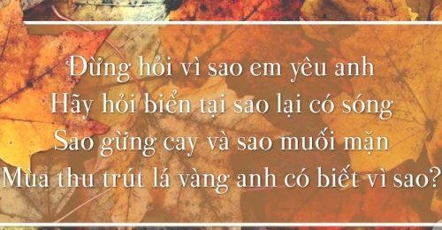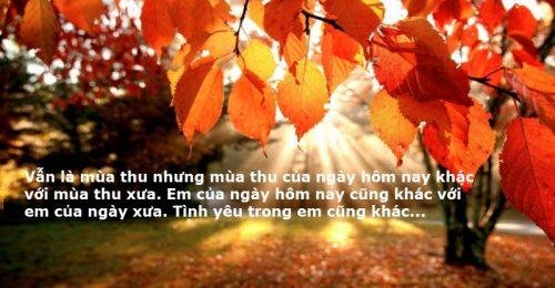 Mùa thu nó mang lại cho ta nhiều cảm xúc thật đấy! Nó làm em lại thèm một cái nắm tay thật chặt, một cái ôm từ phía sau, một cái hôn nhẹ lên trán…; nó làm lý trí em chẳng thể nào kiểm soát nổi những nỗi nhớ về anh nữa rồi….